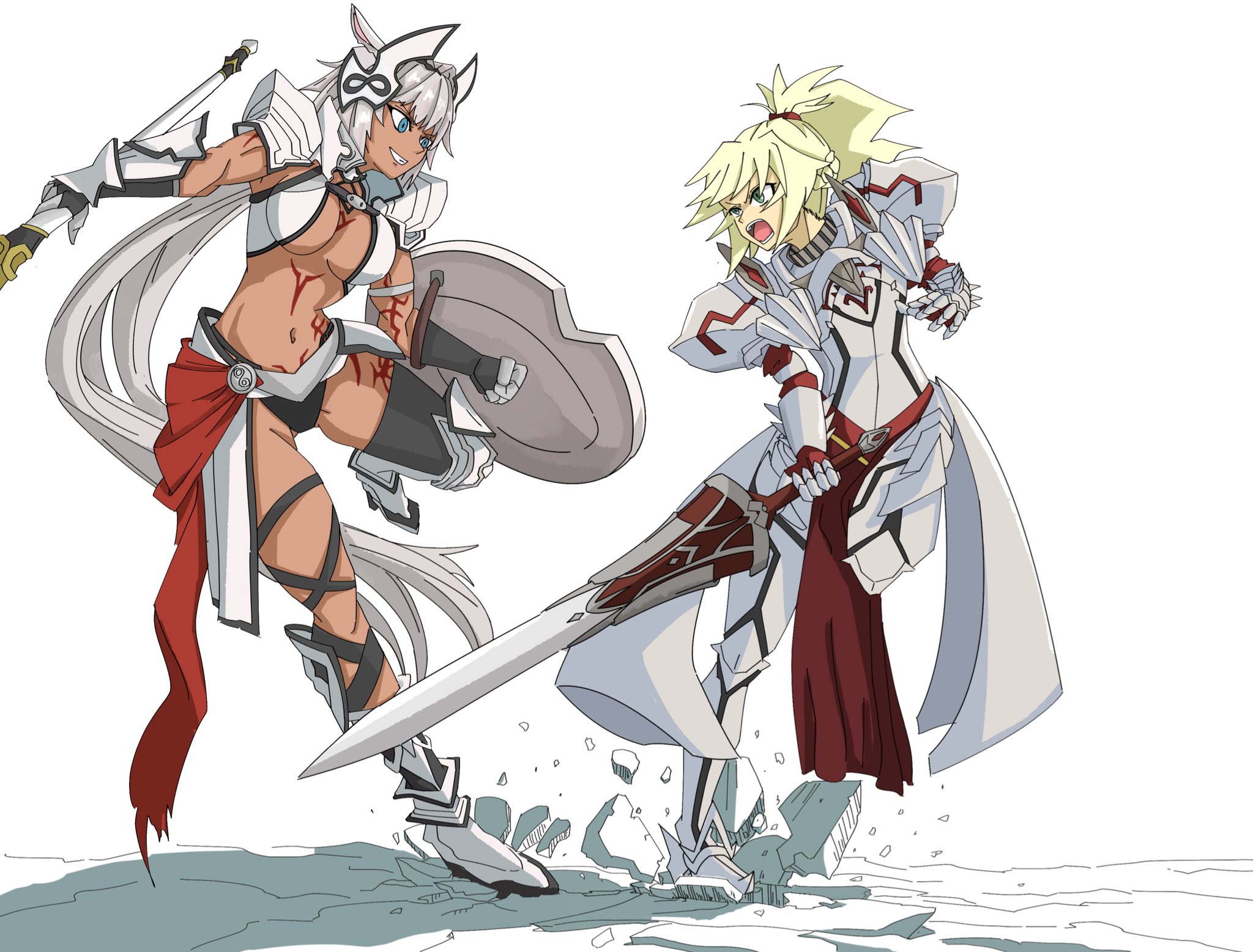 剣豪 A Twitter 2部5章開幕記念イラストその2 カイニスvsモードレッド ギリシャでモーさんをカイニスと対峙出来るこの日をずっと待ってました そしてアトランティスpu2で彼女が実装されるのを祈ってます Fgo Fgo イラスト